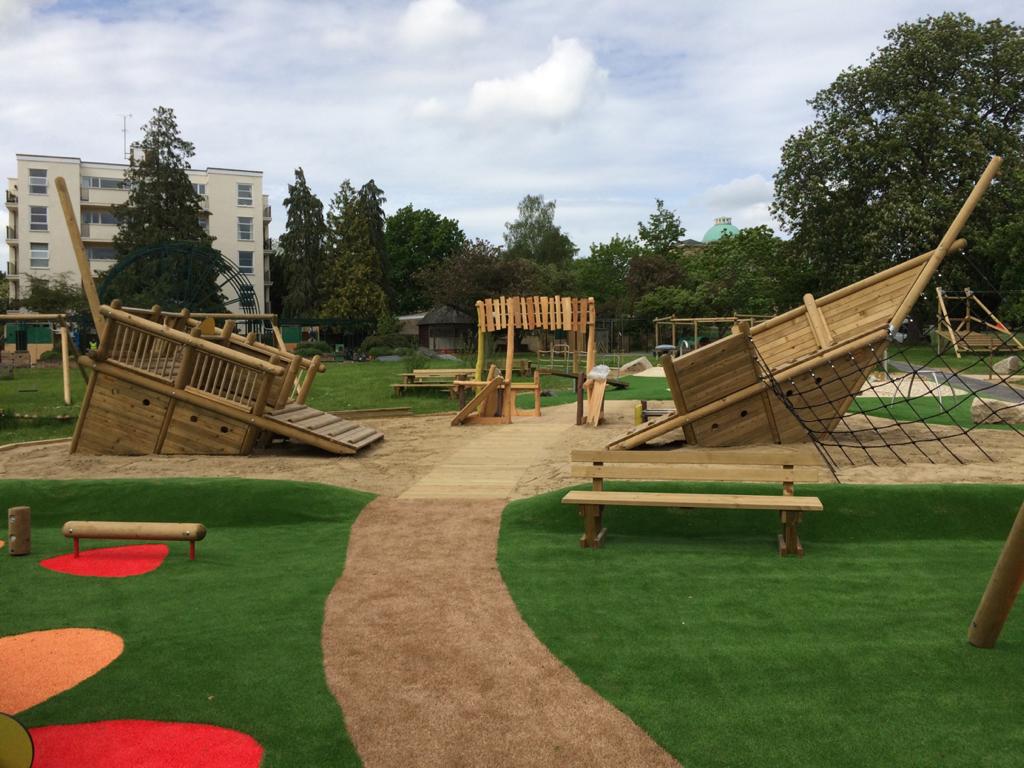 South Wales Sports Grounds (SWSG), working through the principal designer Sutcliffe Play, were commissioned to build a large play park in Pittville Park in the centre of Cheltenham as part of the plans by Cheltenham Borough Council to redevelop the entire site.